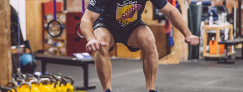 “Jump, land, and stand” is our standard for the box jump, but there are handful of things to be mindful of. First, make sure there’s a “ninja landing”, where there is little to no audible impact on the box. If there’s a loud, thunderous landing then it tells us you’re sending the energy down, not up, which is the intention of the movement. Obviously, the high repetition of such a movement could lead to foot/ankle/knee/hip/back issues. Second, you’ll notice Justin lands with his hips back- this loads the large posterior chain (hamstrings, glutes, and back) rather than just the ankle and knee. This skill can transfer over to your power landings in your olympic lifts. Finally resting on the top of the box allows for better rep cycling and rest management. The simple thought of not staying on the ground too long means that you’ll continue moving, improving your fitness and your workout score.