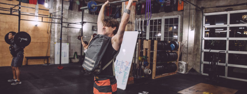 David wearing a GoRuck ruck backwards during a Pregnant WOD