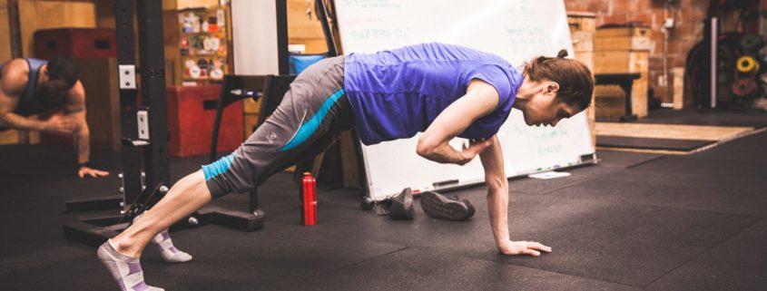 Erika doing some shoulder taps in the 6am Powerlifting class
