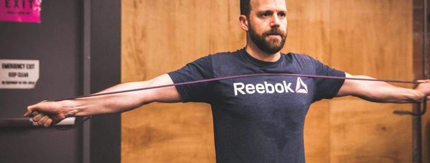 Hugh M doing banded pull aparts during our Powerlifting classes