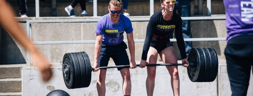 Crystal and Ali doing a tandem deadlift at the 2017 RCF Games