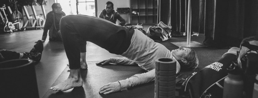 Hip bridging is a great exercise to activate the glutes and hamstrings, while it forces the hip flexors to relax and stretch open. Try it before the next time you lift and see if you feel like you hit better positions.