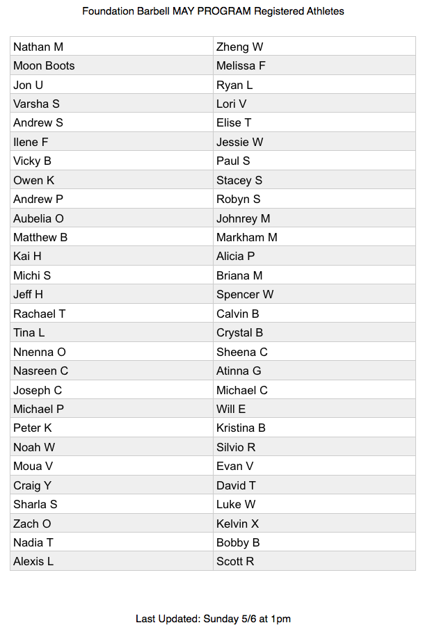 Post results to whiteboard. Report any and all Personal Records by banging the gong then writing them on the PR Window!